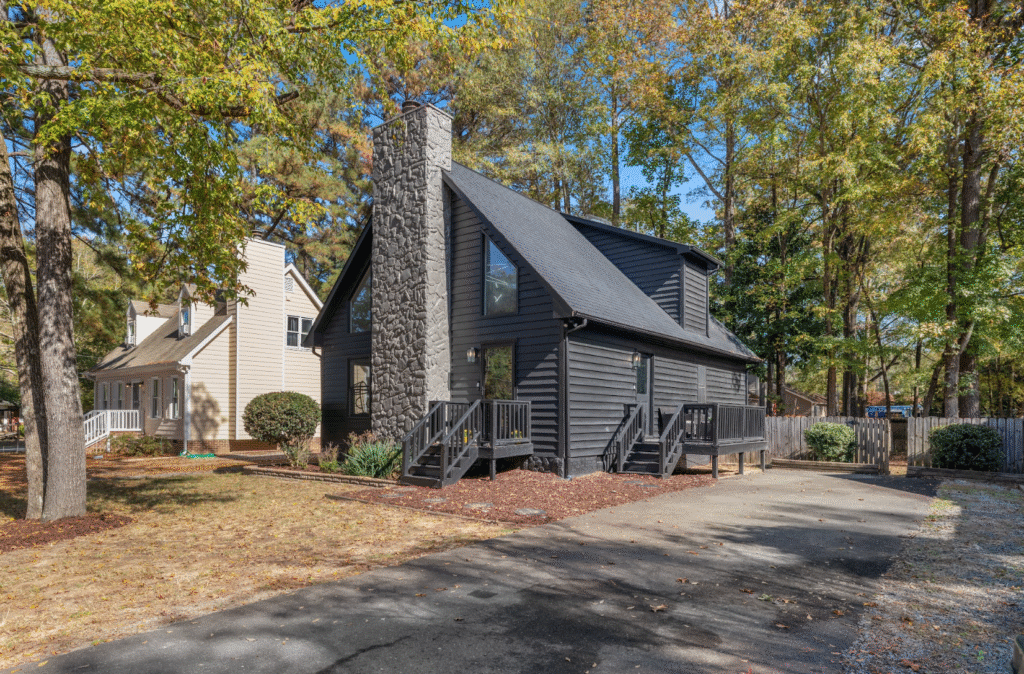 This distinct A-Frame home offers something a hotel cannot: character and peace. Located off Guess Road, it provides rapid access to Duke Regional Hospital (5 mins) and Duke University Hospital (~12 mins) while sitting on a quiet, tree-lined lot.