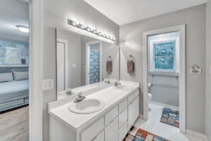 Two additional bedrooms are equally inviting, perfect for guests, family members, or remote work setups.