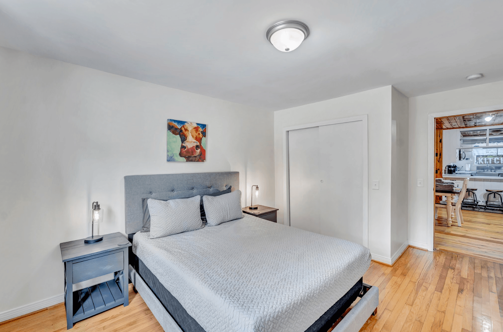 Guest Bedrooms: Two queen-size beds, each with cozy bedding and farmhouse-style décor